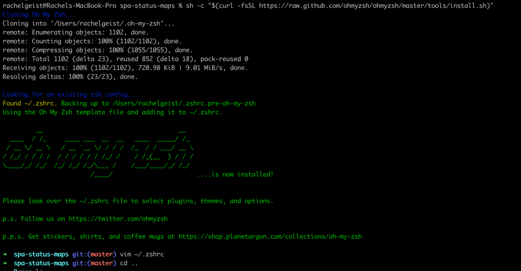 I will say that if you want to also install the Docker plugin, there’s currently a bug with installing that one. To get that to work remove the zcompdump file in your home directory and then restart iTerm.